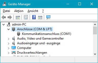 Erweitern Sie die Ansicht bei Anschlüsse (COM & LPT), indem Sie auf den Pfeil links daneben klicken. Welche Inhalte hier zu sehen sind, ist unwichtig: